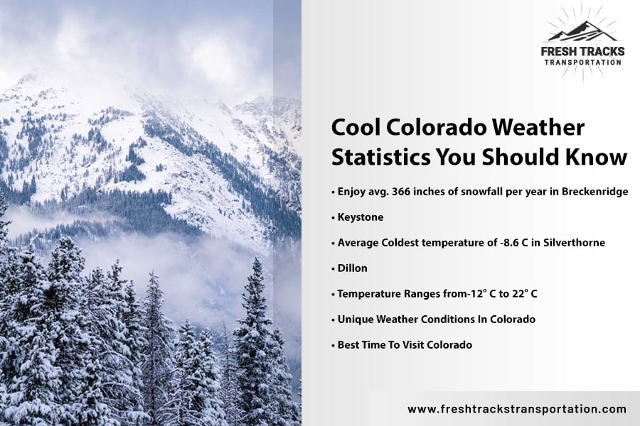 Well, you are now aware of the climate conditions before visiting any of these states. Worry not, because Fresh Tracks Transportation operates all year round to take you to your favorite places. Breckenridge, Vail, Beaver Creek, Keystone, Dillon, Frisco, Copper, Silverthorne, and even Arapahoe Basin are all served by Fresh Tracks Transportation Shuttles.